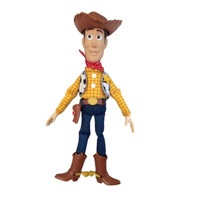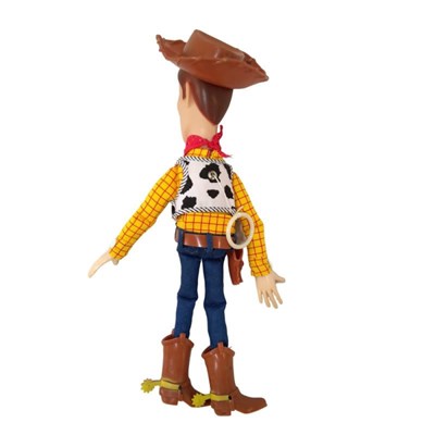 عروسک وودی از جنس پارچه و پلاستیک و بسیار دقیق و با جزییات ساخته شده است. عروسک وودی بصورت تالکینگ وودی و یا وودی سخنگو می باشد و با کشیدن اهرم و ضامن پشت عروسک صداها و دیالوگ های شخصیت وودی از آن پخش می شود. عروسک وودی سخنگو یا گاوچران دارای یک عدد کلاه بزرگ کابوی نیز می باشد که بر روی سر آن قرار می گیرد.