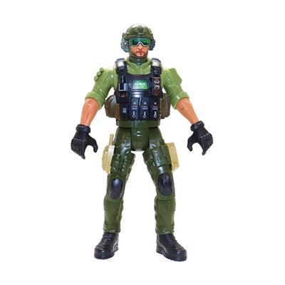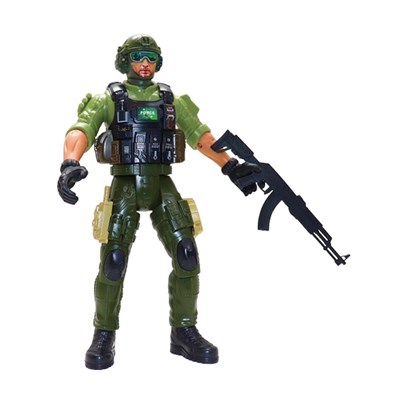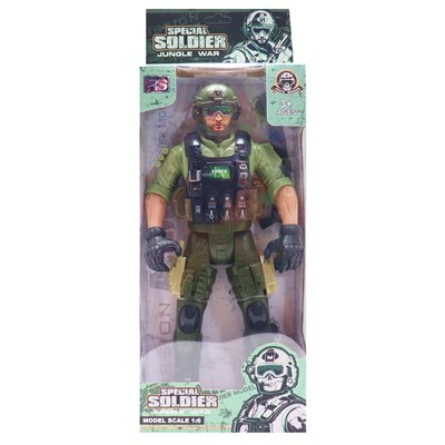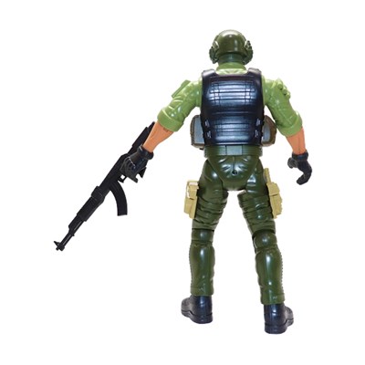اکشن فیگور مفصلی سرباز مقیاس 1:6 با قد تقریبی 30 سانتی‌متر، طراحی‌ شده بر اساس نمونه واقعی سرباز نیروهای ویژه است. این فیگور دارای مفاصل حرکتی کامل در زانو، ران، مچ دست، آرنج و شانه می‌باشد که امکان حرکت و ژست‌های متنوع را فراهم می‌کند. همراه با اسلحه نظامی بزرگ و تجهیزات جانبی جنگی عرضه شده و از پلاستیک ABS مقاوم ساخته شده است. این اسباب‌ بازی جذاب و واقع‌گرایانه برای کودکان بالای 3 سال مناسب می‌باشد.