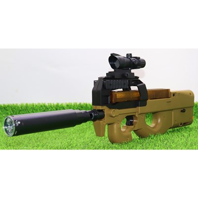 تفنگ اسباب بازی شارژی تیر ژلهای مدل FNP90 با نور LED و افکت صدای شلیک، یک اسباببازی کامل و جذاب برای بازیهای هدفگیری است. این محصول دارای باتری شارژی ۷.۴ ولتی به همراه کابل شارژ USB بوده و افزونهای شبیهسازیشده بهعنوان صداخفهکن تزئینی دارد که قابلیت پخش نور هفترنگ و افکت صدای شلیک را فراهم میکند (قطعه صرفاً تزئینی و غیرعملیاتی است). تفنگ مجهز به دوربین قابل نصب با قابلیت بزرگنمایی است و پک شامل ۱۰ بسته تیر ژلهای (۵۰۰ عدد هر بسته) میباشد. بدنه از پلاستیک باکیفیت ساخته شده و مطابق با استانداردهای ایمنی اروپایی (CE) تولید شده است. استفاده از این محصول برای کودکان بالای ۱۴ سال توصیه میشود .