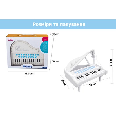 اسباببازی پیانو آموزشی ۲۴ کلید با طراحی زیبا و کاربری آسان، یک گزینهی عالی برای آشنایی کودکان با دنیای موسیقی است. این پیانو دارای ورودی MP3 برای اتصال گوشی و پخش آهنگ دلخواه بوده و با استفاده از میکروفون سیمی، کودک میتواند آواز بخواند یا قصهگویی کند و لحظاتی شاد و آموزشی را تجربه نماید. بدنه آن از پلاستیک بادوام و غیرسمی ساخته شده است و همراه با ۳ عدد پایه، جک اتصال، پایه نگهداری میکروفون، کابل AUX و دفترچه راهنما عرضه میشود. این محصول با ۴ عدد باتری قلمی کار میکند (در جعبه موجود نیست) و برای کودکان بالای ۳ سال مناسب است.