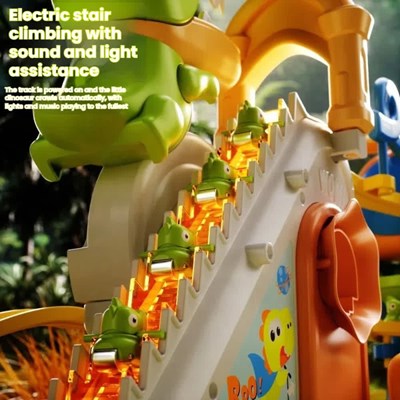 این اسباببازی جذاب با طراحی خلاقانه و ویژگیهای سرگرمکننده خود، دنیایی از هیجان و شادی را برای کودکان به ارمغان میآورد. مجموعه شامل پله برقی موزیکال و چراغدار و یک چرخ و فلک نورانی با قابلیت چرخش است که به کمک دایناسورهای کوچک، بازی را برای کودک شما به تجربهای پویا و مهیج تبدیل میکند. دایناسورها از پلههای متحرک بالا میروند و سپس از سرسره سر میخورند، در حالیکه چراغهای رنگی و موسیقی شاد، فضایی پرانرژی ایجاد میکنند.