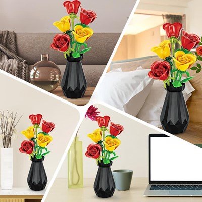 درون جعبهای به ابعاد 16.5×26×7 سانتیمتر، دنیایی از رنگ و هنر نهفته است؛ 249 قطعه لگویی که پس از کنار هم چیدنشان، تبدیل به گلدانی چشمنواز با گلهای رز رنگارنگ و برگهای زیبا میشوند.