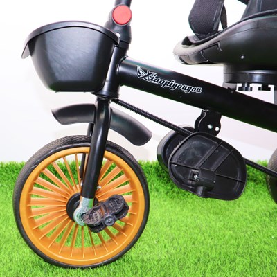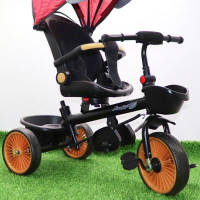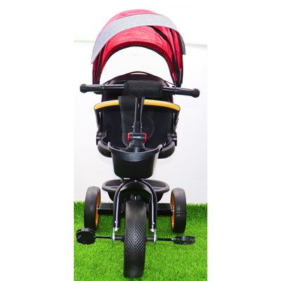 سه‌چرخه فلزی با سایه‌بان، محصولی کاربردی، ایمن و راحت برای کودکان بالای یک سال است که با طراحی مدرن و امکانات کامل، تجربه‌ای دلپذیر برای کودک و والدین فراهم می‌کند. این سه‌چرخه با ارتفاع ۴۰ سانتی‌متر از زمین تا نشیمنگاه و طول کلی ۸۲ سانتی‌متر طراحی شده و بدنه‌ای فلزی و مقاوم دارد.فرمان سه‌چرخه قابلیت خوابیدن و کنترل از روی دسته پشت را دارد و دسته پشتی دو‌تکه با امکان تنظیم ارتفاع، والدین را قادر می‌سازد تا متناسب با قد خود، کنترل راحت‌تری داشته باشند. همچنین، وجود جا لیوانی روی دسته باعث می‌شود نوشیدنی یا وسایل کوچک همیشه در دسترس باشد.صندلی سه‌چرخه از پلاستیک مقاوم با روکش نرم ساخته شده و قابلیت چرخش در چهار جهت مختلف و تنظیم به سمت مادر را دارد تا تعامل و ارتباط کودک با والدین آسان‌تر شود. این صندلی مجهز به دسته محافظ ایمن و کمربند ایمنی سه‌تکه است که از افتادن یا لغزش کودک جلوگیری می‌کند.در قسمت جلو، سبد و جاپایی قابل جدا شدن طراحی شده و در بخش عقب نیز جای بار کاربردی برای حمل اسباب‌بازی یا وسایل کودک وجود دارد. سایه‌بان سه‌چرخه به‌صورت قابل باز و بسته شدن طراحی شده و در صورت نیاز نیز به‌راحتی جدا می‌شود تا در شرایط مختلف آب‌وهوایی بتوان از آن استفاده کرد.لاستیک‌های اسفنجی فشرده این مدل حرکت نرم و بی‌صدا روی سطوح مختلف را ممکن می‌سازد و در کنار بدنه فلزی مستحکم، دوام و کیفیت بالای محصول را تضمین می‌کند. این سه‌چرخه انتخابی عالی برای خانواده‌هایی است که به دنبال ترکیب امنیت، راحتی و طراحی زیبا برای کودک خود هستند.