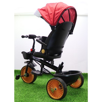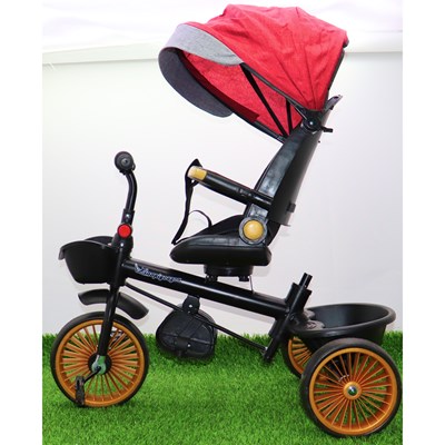 سه چرخه فلزی با سایه بان رنگ قرمز