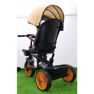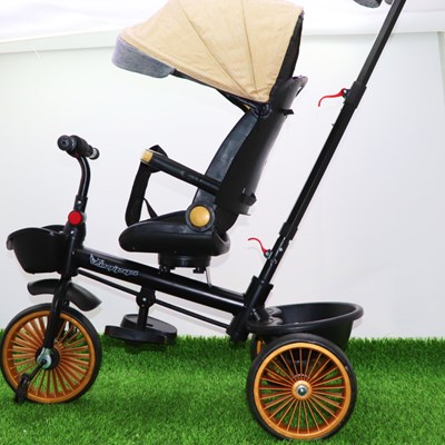 سهچرخه فلزی با سایهبان، محصولی کاربردی، ایمن و راحت برای کودکان بالای یک سال است که با طراحی مدرن و امکانات کامل، تجربهای دلپذیر برای کودک و والدین فراهم میکند. این سهچرخه با ارتفاع ۴۰ سانتیمتر از زمین تا نشیمنگاه و طول کلی ۸۲ سانتیمتر طراحی شده و بدنهای فلزی و مقاوم دارد.فرمان سهچرخه قابلیت خوابیدن و کنترل از روی دسته پشت را دارد و دسته پشتی دوتکه با امکان تنظیم ارتفاع، والدین را قادر میسازد تا متناسب با قد خود، کنترل راحتتری داشته باشند. همچنین، وجود جا لیوانی روی دسته باعث میشود نوشیدنی یا وسایل کوچک همیشه در دسترس باشد.صندلی سهچرخه از پلاستیک مقاوم با روکش نرم ساخته شده و قابلیت چرخش در چهار جهت مختلف و تنظیم به سمت مادر را دارد تا تعامل و ارتباط کودک با والدین آسانتر شود. این صندلی مجهز به دسته محافظ ایمن و کمربند ایمنی سهتکه است که از افتادن یا لغزش کودک جلوگیری میکند.در قسمت جلو، سبد و جاپایی قابل جدا شدن طراحی شده و در بخش عقب نیز جای بار کاربردی برای حمل اسباببازی یا وسایل کودک وجود دارد. سایهبان سهچرخه بهصورت قابل باز و بسته شدن طراحی شده و در صورت نیاز نیز بهراحتی جدا میشود تا در شرایط مختلف آبوهوایی بتوان از آن استفاده کرد.لاستیکهای اسفنجی فشرده این مدل حرکت نرم و بیصدا روی سطوح مختلف را ممکن میسازد و در کنار بدنه فلزی مستحکم، دوام و کیفیت بالای محصول را تضمین میکند. این سهچرخه انتخابی عالی برای خانوادههایی است که به دنبال ترکیب امنیت، راحتی و طراحی زیبا برای کودک خود هستند.