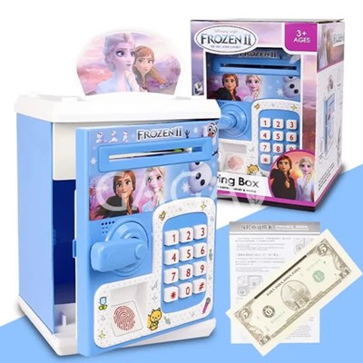 گاوصندوق اثر انگشتی و رمزدار طرح فروزن مدل 3002 یک اسباببازی آموزشی و سرگرمکننده برای کودکان بالای 3 سال است. این گاوصندوق موزیکال بوده و دارای حسگر اثر انگشت برای باز شدن در است. همچنین امکان تغییر رمز، انداختن سکه و گرفتن اسکناس بهصورت خودکار را دارد. همراه با اسکناس بازی عرضه میشود و با 3 عدد باتری قلمی (داخل جعبه نیست) کار میکند. ساختهشده از پلاستیک ABS درجه یک و باکیفیت بالا است.