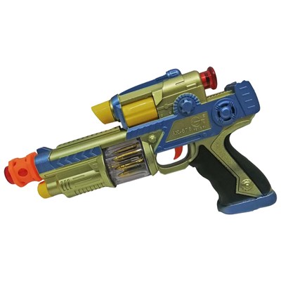 تفنگ موزیکال مدل 878 با طول 17 سانتیمتر، یک اسباببازی سرگرمکننده و ایمن برای کودکان است. این تفنگ دارای موزیک، چراغ و ویبره بوده و هیجان بازی را برای کودک دوچندان میکند. برای عملکرد آن به 3 عدد باتری قلمی نیاز است (در جعبه موجود نیست). محصول از پلاستیک باکیفیت ساخته شده و مطابق با استانداردهای اروپایی (CE) میباشد. مناسب برای کودکان بالای 3 سال.