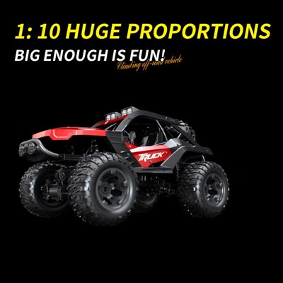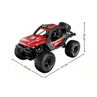 اگر دنبال یک ماشین کنترلی قدرتمند، باکیفیت و پرهیجان هستید، این مدل دقیقاً همان چیزی است که دنبالش می‌گردید! با طراحی چشمگیر و ابعاد 26×47×29 سانتی‌متر، حس رانندگی واقعی را برایتان زنده می‌کند.از جنس فلز و پلاستیک مقاوم ABS ساخته شده تا در برابر ضربه و زمین‌های ناهموار دوام بالایی داشته باشد. سیستم چهارچرخ محرک و کمک‌فنر قوی آن باعث می‌شود در مسیرهای سربالایی، خاکی یا حتی سنگی بدون کاهش سرعت حرکت کند. باتری قابل شارژ 7.4 ولت انرژی این هیولای کوچک را تأمین می‌کند و با ریموت کنترل فرکانس 2.4 گیگاهرتزی، می‌توانید بدون تداخل سیگنال از فاصله زیاد آن را هدایت کنیدکنترل از نوع طرح تفنگی است تا دقت و حس کنترل واقعی افزایش یابد.چراغ‌های LED روشن ، جلوه‌ای منحصربه‌فرد به ماشین می‌دهد و در شب جذاب‌ترش می‌کند. سرعت متغیر آن نیز باعث می‌شود رانندگی‌تان دقیق و حرفه‌ای‌تر باشد.فقط کافی است سه عدد باتری قلمی برای ریموت کنترل تهیه کنید تا ماجراجویی شروع شود!منناسب برای سن 8 سال به بالا؛ چه برای کودک عاشق سرعت و چه برای بزرگسال علاقه‌مند به هیجان و تکنولوژی!
