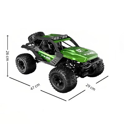 اگر دنبال یک ماشین کنترلی قدرتمند، باکیفیت و پرهیجان هستید، این مدل دقیقاً همان چیزی است که دنبالش می‌گردید! با طراحی چشمگیر و ابعاد 26×47×29 سانتی‌متر، حس رانندگی واقعی را برایتان زنده می‌کند.از جنس فلز و پلاستیک مقاوم ABS ساخته شده تا در برابر ضربه و زمین‌های ناهموار دوام بالایی داشته باشد. سیستم چهارچرخ محرک و کمک‌فنر قوی آن باعث می‌شود در مسیرهای سربالایی، خاکی یا حتی سنگی بدون کاهش سرعت حرکت کند. باتری قابل شارژ 7.4 ولت انرژی این هیولای کوچک را تأمین می‌کند و با ریموت کنترل فرکانس 2.4 گیگاهرتزی، می‌توانید بدون تداخل سیگنال از فاصله زیاد آن را هدایت کنیدکنترل از نوع طرح تفنگی است تا دقت و حس کنترل واقعی افزایش یابد.چراغ‌های LED روشن ، جلوه‌ای منحصربه‌فرد به ماشین می‌دهد و در شب جذاب‌ترش می‌کند. سرعت متغیر آن نیز باعث می‌شود رانندگی‌تان دقیق و حرفه‌ای‌تر باشد.فقط کافی است سه عدد باتری قلمی برای ریموت کنترل تهیه کنید تا ماجراجویی شروع شود!منناسب برای سن 8 سال به بالا؛ چه برای کودک عاشق سرعت و چه برای بزرگسال علاقه‌مند به هیجان و تکنولوژی!
