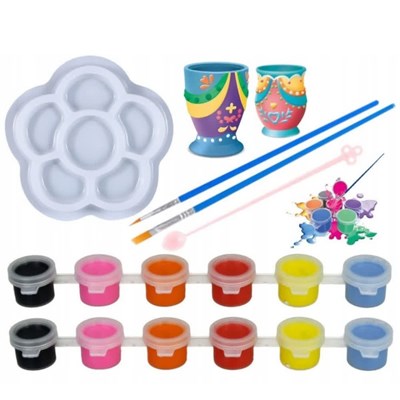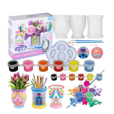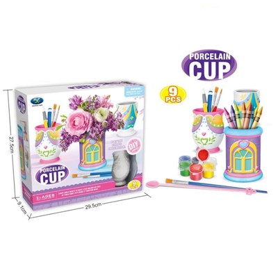 - دارای 9 قطعه شامل 3 گلدان چینی،2 عدد قلمو،2 سری گواش 6 رنگی،1 پالت و 1 قاشق ترکیب رنگ
