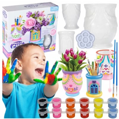این مجموعه کامل 9 قطعهای، فرصتی عالی برای خلق یک اثر هنری ماندگار فراهم میکند. سه گلدان چینی خام (ابعاد 10*7 سانتیمتر) را با رنگهای دلخواه خود تزئین کرده و دکوراسیونی منحصر به فرد بسازید.محتویات این جعبه شامل 3 عدد گلدان چینی خام و آمادهی رنگآمیزی ، 12 عدد گواش در 6 رنگ اصلی (قرمز، آبی، سبز، سفید، زرد و مشکی) و 2 قلموی حرفهای (سرگرد و سرتخت)، 1 پالت رنگ و 1 قاشقک ترکیب رنگ می باشد. این سرگرمی و فعالیت هنری برای کودکان بالای 3 سال مناسب بوده همچنین گلدانها پس از رنگآمیزی نهایی، قابلیت شستشو یا رنگآمیزی مجدد ندارند.