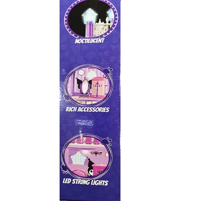 این خانه جذاب با 401 قطعه رنگارنگ، بعد از سرهمکردن به ابعاد 60.5*66*78 سانتیمتر درمیآید و دنیایی پر از ماجرا برای کودک شما میسازد.دارای فیگور کرومی 8 سانتیمتری، چراغهای نورانی (نیاز به دو باتری قلمی دارد که در جعبه نیست) و مجموعهای کامل از مبلمان، سرویس خواب، صندلی و میز سایباندار، پله، سرسره و حصار است.جنس بدنه از پلاستیک باکیفیت مطابق استانداردهای اروپایی بوده و قسمتهایی از پشتزمینه و شیروانی از مقوا ساخته شدهاند.در ابعاد بستهبندی 10*52*35 سانتیمتر عرضه میشود و مناسب کودکان بالای 3 سال است.خانهای زیبا، نورانی و پر از جزئیات برای ساعتها بازی و تخیل!