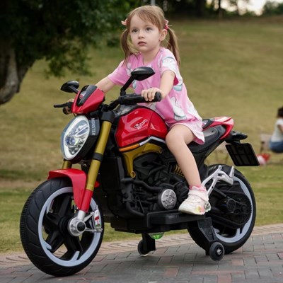 موتور شارژی دوکاتی آکسون AX3071 با طراحی زیبا و ابعاد 125×80×56 سانتیمتر، گزینهای هیجانانگیز و مناسب برای کودکان بالای ۳ سال است. این مدل دارای دو موتور قدرتمند و باتری ۱۲ ولت ۵ آمپر بوده و با حرکت از طریق دسته گاز، حس واقعیتری از موتورسواری را به کودک منتقل میکند. وجود سیستم نورپردازی همراه با لیزر و چرخهای چراغدار جلوهای بسیار جذاب و متفاوت به این موتور بخشیده است. صندلی چرم راحت و امکاناتی مانند پخش موزیک، بلوتوث و درگاه USB، موجب میشود کودک لحظاتی شاد، لذتبخش و سرگرمکننده را تجربه کند. موتور شارژی دوکاتی AX3071 با طراحی حرفهای، کیفیت مناسب و امکانات کامل، انتخابی عالی برای تفریح، هیجان و تقویت مهارتهای حرکتی کودک به شمار میرود.