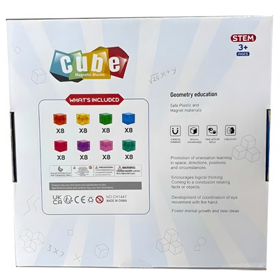 تایل مگنت مغناطیسی مکعبی ۶۴ قطعه مدل 1447 شامل ۶۴ قطعه مکعب شفاف مغناطیسی با ابعاد ۳ سانتیمتر است که در ۸ رنگ متنوع طراحی شدهاند. در هر طرف هر مکعب ۴ آهنربا قرار گرفته تا اتصالها کاملاً قوی، پایدار و بدون لقی باشند. این مجموعه قابلیت ساخت اشکال متنوع و خلاقانه را دارد و از پلاستیک باکیفیت و رنگارنگ ساخته شده است و برای کودکان بالای ۳ سال گزینهای مناسب به شمار میرود.