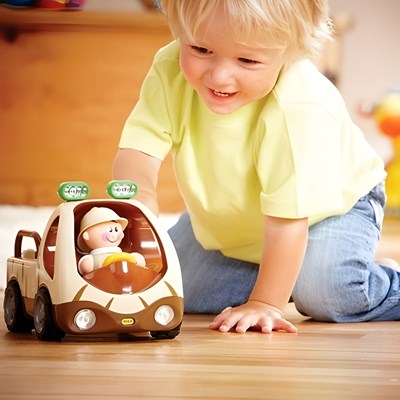 این ماشین دارای یک عروسک کوچک جهانگرد است و کودک میتواند به صورت جداگانه با آن بازی کند. این ماشین نیاز به باتری دارد و زمانی که سر عروسک را فشار دهید شروع به حرکت می کند. با فشار دادن دکمه روی فرمان چراغهای روی سقف ماشین روشن میشود و شروع به بوق زدن میکند. این اسباب بازی موزیکال قدرت تخیل و خلاقیت کودک را پرورش میدهد. این اسباب بازی باعث افزایش مهارتهای دیداری، لامسه، شنیداری و تقویت هماهنگی میان چشم و دست کودک میشود.