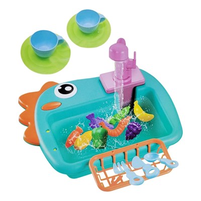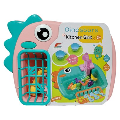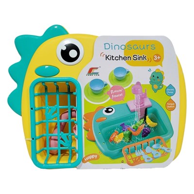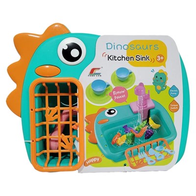 اسباب بازی سینک ظرفشویی مدل دایناسور یک سرویس ظرفشویی اسباب بازی است که با محفظه نگهداری آبی که در آن وجود دارد میتواند مثل یک ظرفشویی واقعی از شیر آب آن، آب خارج شده، داخل سینک ریخته شود و از داخل سینک مجدد به داخل محفظه آب برای استفاده مجدد برگردد و این چرخه ادامه دارد تا تداعی کننده یک سینک آشپزخانه واقعی برای کودکان باشد. با این اسباب بازی میتوانید کودک خود را به انجام کارهای خانه علاقهمند کنید. این اسباب بازی برای بازیهای فردی، گروهی با دوستان، کاربرد دارد. بچهها عاشق تقلید کردن از بزرگترها و انجام کارهایی هستند که آنها در دنیای واقعی انجام میدهند. این سینک ظرفشویی به دلیل ظاهر زیبا و رنگارنگ آن، به یک اسباب بازی پرطرفدار در میان کودکان تبدیل شده است. جنس سینک و وسایل از پلاستیک بسیار مرغوب است که از مواد اولیه درجه یک تولید شده، کیفیت ساخت و طراحی بسیار خوبی دارد که اسباب بازی را برای بازی کودکان مناسب کرده است. رنگ وسایل این مجموعه بسیار شاد و زیبا است به همین دلیل کودک را به خود جذب میکند. تولید کنندگان سعی کردهاند مواد سمی در این اسباب بازی استفاده نشود و وسایل جانبی برای کودکان ایمن باشند.