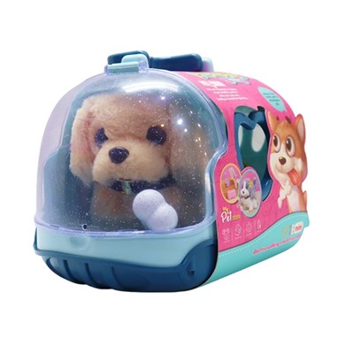 سگ خانگی به همراه قفس و وسایل آرایشی رنگ کرم کد 1059_عروسک رباتیک