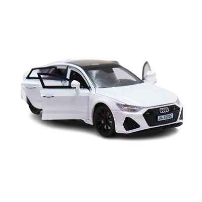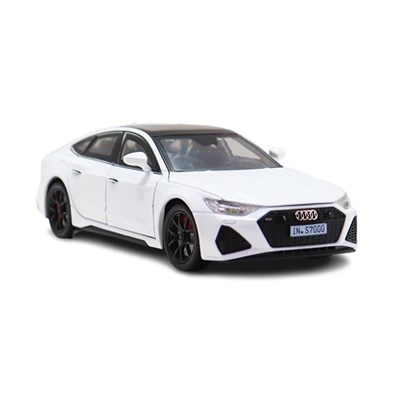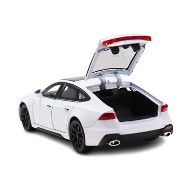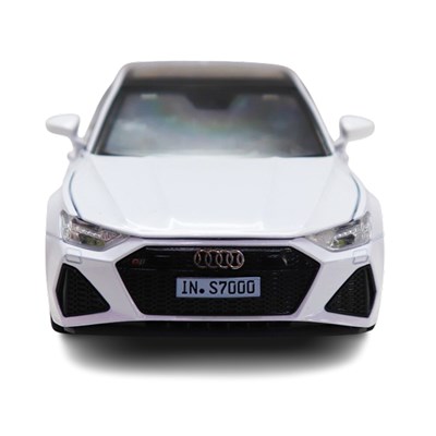 ماشین فلزی آئودی موزیکال با چراغ، کمک‌ فنر و درب‌ های بازشو رنگ سفید_ماشین اسباب بازی
