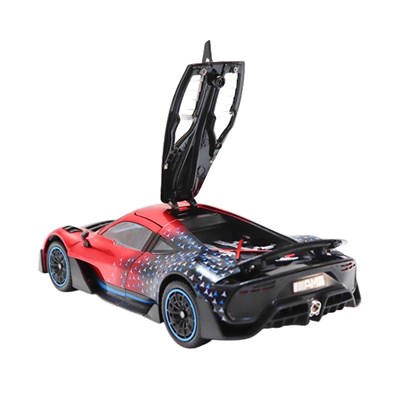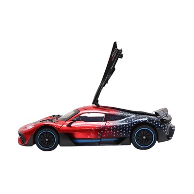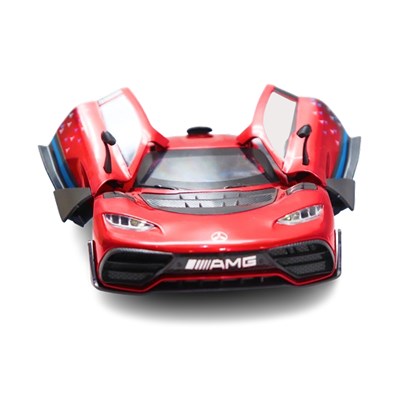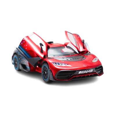 ماشین فلزی بنز موزیکال با چراغ، کمک‌ فنر و درب‌ های بازشو رنگ قرمز_ماشین اسباب بازی
