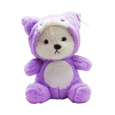 عروسک پولیشی اورجینال خرس کلاه دار بنفش 26 سانتی_عروسک