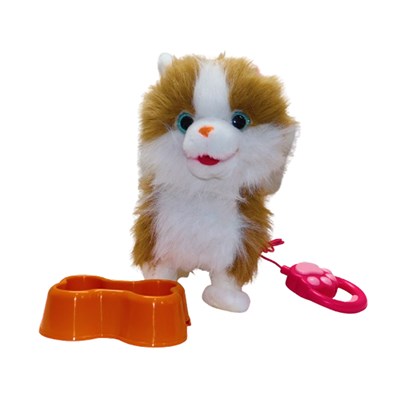 عروسک رباتیک گربه پشمالو موزیکال سنسور دار با دسته ی کنترلی رنگ قهوه ای مدل 5535_عروسک رباتیک