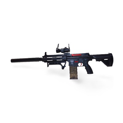 - دارای قنداق اسلحه، بند، خشاب، 8 پوکه، 20 تیر اسفنجی، دوربین نصبشدنی، لوله صداخفهکن و دسته جلو