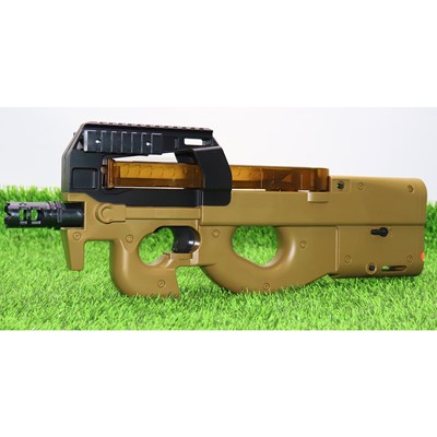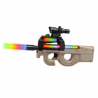 تفنگ اسباب بازی شارژی تیر ژلهای مدل FNP90 با نور LED و افکت صدای شلیک، یک اسباببازی کامل و جذاب برای بازیهای هدفگیری است. این محصول دارای باتری شارژی ۷.۴ ولتی به همراه کابل شارژ USB بوده و افزونهای شبیهسازیشده بهعنوان صداخفهکن تزئینی دارد که قابلیت پخش نور هفترنگ و افکت صدای شلیک را فراهم میکند (قطعه صرفاً تزئینی و غیرعملیاتی است). تفنگ مجهز به دوربین قابل نصب با قابلیت بزرگنمایی است و پک شامل ۱۰ بسته تیر ژلهای (۵۰۰ عدد هر بسته) میباشد. بدنه از پلاستیک باکیفیت ساخته شده و مطابق با استانداردهای ایمنی اروپایی (CE) تولید شده است. استفاده از این محصول برای کودکان بالای ۱۴ سال توصیه میشود .