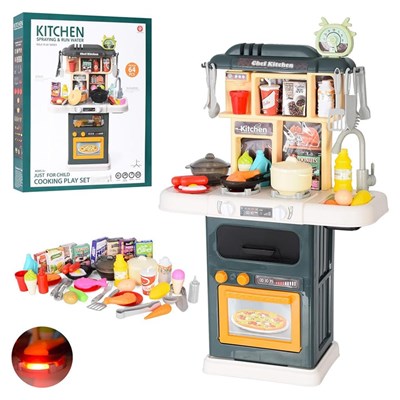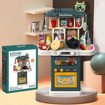 ست اسباببازی آشپزخانه ۶۴ تکه، یک مجموعه کامل و جذاب برای کودکان علاقهمند به بازیهای نقشآفرینی است. این ست موزیکال و چراغدار بوده و دارای سینک ظرفشویی پمپی با قابلیت ریزش آب واقعی است. همچنین بخار واقعی هنگام پختوپز تولید میکند تا حس واقعی آشپزی را برای کودک تداعی کند. طراحی این مجموعه شامل قفسه ذخیرهسازی و سبد آویز برای نگهداری مواد غذایی است و مجموعهای متنوع از میوهها، سبزیجات، ظروف و لوازم آشپزخانه را در خود جای داده است. تمام قطعات از پلاستیک باکیفیت و مواد غیرسمی ساخته شدهاند و لبههای گرد و صاف آن ایمنی کودک را تضمین میکند. این ست شامل ۶۴ قطعه مانند سینک ظرفشویی، اجاق گاز با قابلیت پاشش آب، فر، هود، کابینت، قابلمه، بستنی و میوهجات است و برای کارکرد نیاز به ۴ عدد باتری قلمی دارد (در بستهبندی موجود نیست). مناسب برای کودکان بالای ۳ سال.