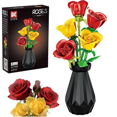 درون جعبهای به ابعاد 16.5×26×7 سانتیمتر، دنیایی از رنگ و هنر نهفته است؛ 249 قطعه لگویی که پس از کنار هم چیدنشان، تبدیل به گلدانی چشمنواز با گلهای رز رنگارنگ و برگهای زیبا میشوند.