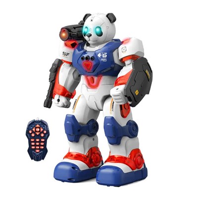 ربات دارای حسگر لمسی، قابلیت ضبط صدا و حتی تعریف داستانهای انگلیسی است تا کودک ضمن بازی، آموزش نیز دریافت کند. همچنین وجود سپر و تفنگ قابلنصب روی دست تجربهای جذاب از بازیهای ماجراجویانه را رقم میزند همچنین ریموت کنترل آن تنها با دو باتری قلمی کار میکند و امکان فرمان دادن، برنامهریزی و هدایت کامل ربات را در اختیار شما میگذارد.