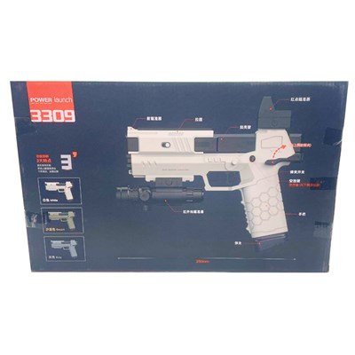 تفنگ تیر اسفنجی مدل 3309A با طول ۲۵ سانتیمتر، مجموعهای کامل برای بازی ایمن و هیجانانگیز ارائه میدهد؛ این ست شامل ۲۰ تیر اسفنجی نرم و ۱۶ پوکه است، مجهز به مگسک نشانهگیری و لیزر داخلی که با باتری سکهای کار میکند (باتری داخل دستگاه نصبشده)، و دارای دکمه ضامن ایمنی برای جلوگیری از شلیک ناخواسته میباشد. بدنه تفنگ از پلاستیک باکیفیت بالا ساخته شده و طراحی شده برای استفادهٔ طولانیمدت؛ مناسب برای افراد بالای ۱۴ سال.