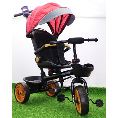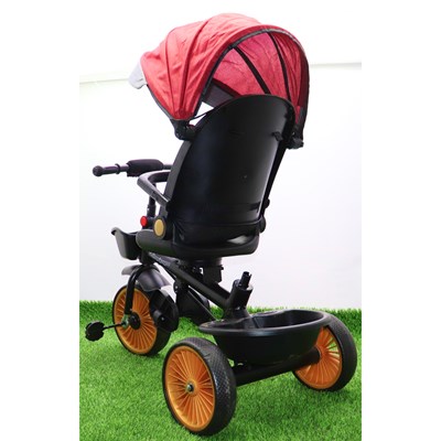سه چرخه فلزی با سایه بان رنگ قرمز