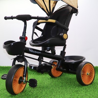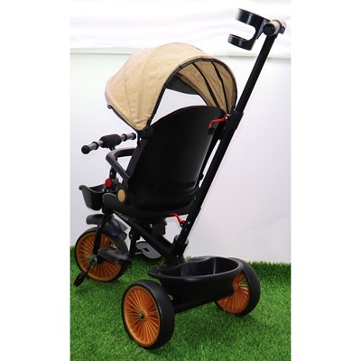 سهچرخه فلزی با سایهبان، محصولی کاربردی، ایمن و راحت برای کودکان بالای یک سال است که با طراحی مدرن و امکانات کامل، تجربهای دلپذیر برای کودک و والدین فراهم میکند. این سهچرخه با ارتفاع ۴۰ سانتیمتر از زمین تا نشیمنگاه و طول کلی ۸۲ سانتیمتر طراحی شده و بدنهای فلزی و مقاوم دارد.فرمان سهچرخه قابلیت خوابیدن و کنترل از روی دسته پشت را دارد و دسته پشتی دوتکه با امکان تنظیم ارتفاع، والدین را قادر میسازد تا متناسب با قد خود، کنترل راحتتری داشته باشند. همچنین، وجود جا لیوانی روی دسته باعث میشود نوشیدنی یا وسایل کوچک همیشه در دسترس باشد.صندلی سهچرخه از پلاستیک مقاوم با روکش نرم ساخته شده و قابلیت چرخش در چهار جهت مختلف و تنظیم به سمت مادر را دارد تا تعامل و ارتباط کودک با والدین آسانتر شود. این صندلی مجهز به دسته محافظ ایمن و کمربند ایمنی سهتکه است که از افتادن یا لغزش کودک جلوگیری میکند.در قسمت جلو، سبد و جاپایی قابل جدا شدن طراحی شده و در بخش عقب نیز جای بار کاربردی برای حمل اسباببازی یا وسایل کودک وجود دارد. سایهبان سهچرخه بهصورت قابل باز و بسته شدن طراحی شده و در صورت نیاز نیز بهراحتی جدا میشود تا در شرایط مختلف آبوهوایی بتوان از آن استفاده کرد.لاستیکهای اسفنجی فشرده این مدل حرکت نرم و بیصدا روی سطوح مختلف را ممکن میسازد و در کنار بدنه فلزی مستحکم، دوام و کیفیت بالای محصول را تضمین میکند. این سهچرخه انتخابی عالی برای خانوادههایی است که به دنبال ترکیب امنیت، راحتی و طراحی زیبا برای کودک خود هستند.