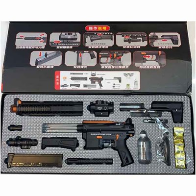 - دارای 12 بسته تیر ژلهای _ بطری نگهدارنده تیر _ باتری ماژولار و شارژر