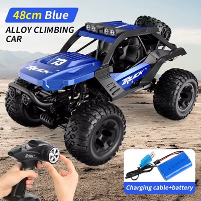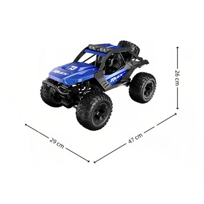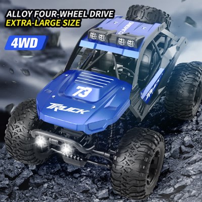 اگر دنبال یک ماشین کنترلی قدرتمند، باکیفیت و پرهیجان هستید، این مدل دقیقاً همان چیزی است که دنبالش می‌گردید! با طراحی چشمگیر و ابعاد 26×47×29 سانتی‌متر، حس رانندگی واقعی را برایتان زنده می‌کند.از جنس فلز و پلاستیک مقاوم ABS ساخته شده تا در برابر ضربه و زمین‌های ناهموار دوام بالایی داشته باشد. سیستم چهارچرخ محرک و کمک‌فنر قوی آن باعث می‌شود در مسیرهای سربالایی، خاکی یا حتی سنگی بدون کاهش سرعت حرکت کند. باتری قابل شارژ 7.4 ولت انرژی این هیولای کوچک را تأمین می‌کند و با ریموت کنترل فرکانس 2.4 گیگاهرتزی، می‌توانید بدون تداخل سیگنال از فاصله زیاد آن را هدایت کنیدکنترل از نوع طرح تفنگی است تا دقت و حس کنترل واقعی افزایش یابد.چراغ‌های LED روشن ، جلوه‌ای منحصربه‌فرد به ماشین می‌دهد و در شب جذاب‌ترش می‌کند. سرعت متغیر آن نیز باعث می‌شود رانندگی‌تان دقیق و حرفه‌ای‌تر باشد.فقط کافی است سه عدد باتری قلمی برای ریموت کنترل تهیه کنید تا ماجراجویی شروع شود!منناسب برای سن 8 سال به بالا؛ چه برای کودک عاشق سرعت و چه برای بزرگسال علاقه‌مند به هیجان و تکنولوژی!