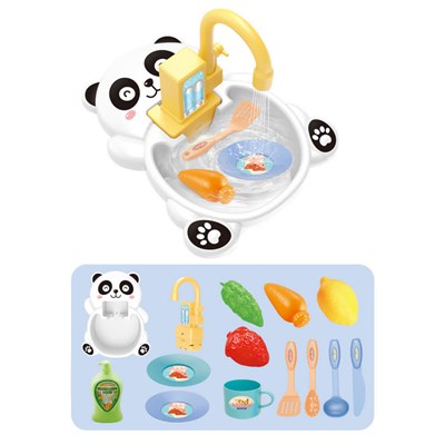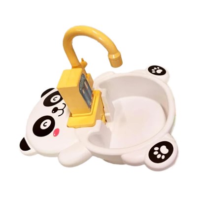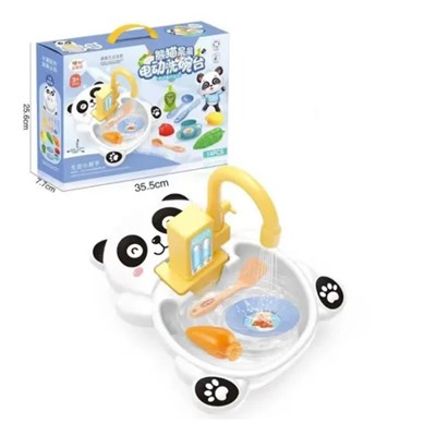 این سینک ظرفشویی جذاب طرح پاندا کودکان را ساعتها سرگرم میکند!آب از شیر ظرفشویی خارج شده و قابلیت ریختن دوباره درون سینک را دارد. محصول پمپدار و باتری خور بوده و شیر آب برای کارکرد نیاز به 2 عدد باتری قلمی دارد (در جعبه موجود نیست) همچنین این مجموعه 14 قطعه سرگرمکننده دارد که شامل سینک و شیر آب به همراه : 2 عدد بشقاب ٫ 1 عدد چنگال ٫ 1 عدد چاقو ٫ 1 عدد کفگیر ٫ 1 عدد ملاقه / 1 عدد لیوان ٫ 1 عدد ظرف مایع ظرفشویی /1 عدد هویج ٫ 1 عدد توت فرنگی ٫ 1 عدد بلال ٫ 1 عدد لیمو می باشد . ساخته شده از پلاستیک بسیار مرغوب و مقاوم و مناسب کودکان بالای 3 سال.