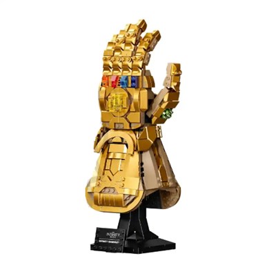 لگو ساختنی دستکش طلایی تانوس با پایه 590 قطعه مدل 12033 شناخته میشود، تجربهای جذاب برای علاقهمندان لگوهای مارول فراهم میکند. این مجموعه شامل 590 قطعه ریز و درشت ABS است و شما میتوانید یک صحنه کامل از دنیای مارول بسازید.این مجموعه، مجسمه دقیق و جذابی از دستکش تانوس و سنگهای بینهایت ایجاد میکند. طراحان بر اساس کمیکها و فیلمهای مارول این مدل را ساختهاند تا طرفداران بتوانند دستکش را با سنگهای بینهایت خود به دلخواه نمایش دهند. همچنین این مجسمه به عنوان یک قطعه تزئینی جذاب برای هر طرفدار مارول و دنیای سینمایی آنها عمل میکند.دفترچه راهنمای تصویری داخل جعبه، مراحل مونتاژ را با تصاویر رنگی و توضیحات ساده نشان میدهد. کودک میتواند بدون کمک بزرگترها قطعات را کنار هم قرار دهد و با این کار مهارتهای فنی و خلاقیت خود را تقویت کند.این مدل ظاهر باشکوه دستکش بینهایت را بازسازی میکند و سنگهای درخشان بینهایت را در خود جای داده است. انگشتان دستکش قابلیت حرکت دارند و شما میتوانید ژست معروف بشکن تانوس را بازسازی کنید. پایه نگهدارنده همراه با پلاک مخصوص، جلوه خاصی به این اثر هنری میدهد و نمایش آن را فوقالعاده میکند.
