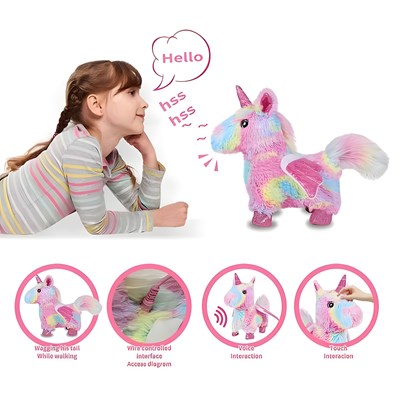 عروسک اسب پونی کنترلی مدل 933135 یک اسباببازی سرگرمکننده و دوستداشتنی برای کودکان است که با حرکت طبیعی و صدای شیهه واقعی، تجربهای شبیه به بازی با یک اسب واقعی را ایجاد میکند. این عروسک قابلیت راه رفتن، تکان دادن دم حین حرکت و رقصیدن همراه با پخش موزیک را دارد. برای استفاده به ۳ عدد باتری قلمی نیاز دارد که در جعبه موجود نیست. محصول از پلاستیک و الیاف ضدحساسیت مطابق با استانداردهای اروپایی (CE) ساخته شده و برای کودکان بالای ۳ سال مناسب است.