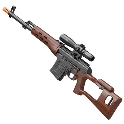 - شامل : قنداق اسلحه، دوربین غیر قابل تنظیم، لوله تفنگ، عینک، کابل شارژ، باتری شارژی، 2 بسته تیر ژله ای