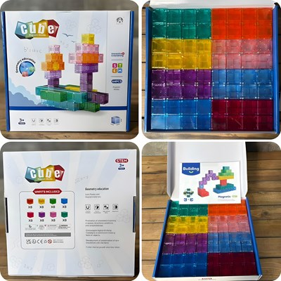 تایل مگنت مغناطیسی مکعبی ۶۴ قطعه مدل 1447 شامل ۶۴ قطعه مکعب شفاف مغناطیسی با ابعاد ۳ سانتیمتر است که در ۸ رنگ متنوع طراحی شدهاند. در هر طرف هر مکعب ۴ آهنربا قرار گرفته تا اتصالها کاملاً قوی، پایدار و بدون لقی باشند. این مجموعه قابلیت ساخت اشکال متنوع و خلاقانه را دارد و از پلاستیک باکیفیت و رنگارنگ ساخته شده است و برای کودکان بالای ۳ سال گزینهای مناسب به شمار میرود.