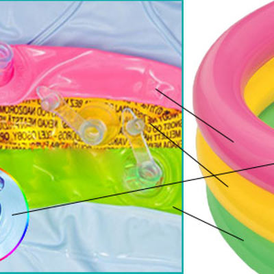 طراحی محصول از سه لایه بادی دایره ای شکل ایجاد شده است از سه رنگ شاد صورتی، زرد و سبز در لایه های آن استفاده شده و کف آن نیز آبی می باشد که حس شوق و شور برای آبتنی در کودکان ایجاد کرده است. با توجه به اینکه ابعاد آن کوچک است در تمامی نقاط خانه قابل راه اندازی می باشد.