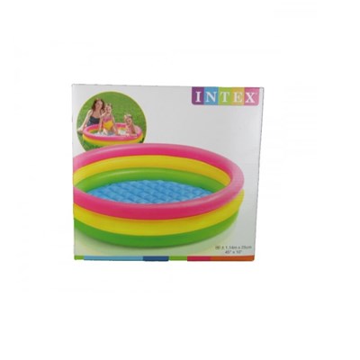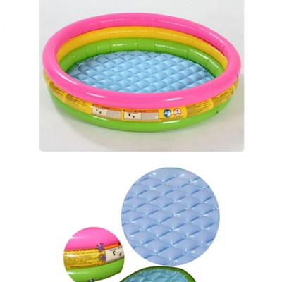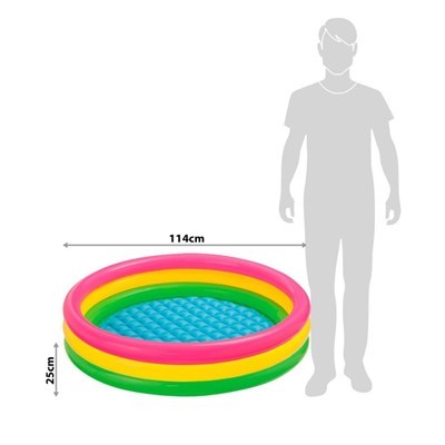استخر بادی قطر 114 سانتی دایره ای با ارتفاع 33 سانتیمتر با طرح رینگی در سه حلقه رنگی جذاب صورتی و سبز و زرد با کف بادی تولید شده و یکی از استخر های پرفروش شرکت اینتکس در فروشگاه های اینتکس در ایران است . استخر بادی قطر 114 سایز کوچک استخر های بادی اینتکس به شمار میرود که نیاز به فضای کمی دارد و به راحتی در زمان کمی قابلیت نصب را دارد . استخر بادی قطر 114 سانتیمتری اینتکس به علت داشتن حجم کوچک و اندازه مناسب به راحتی در فضای حمام و بالکن و یا حیاط منزل و ویلا قابلیت استفاده را دارد . تمامی قسمت های بدنه استخر بادی از پی وی سی چند لایه با مقاومت مناسب و تحمل وزن بالا تشکیل شده است .